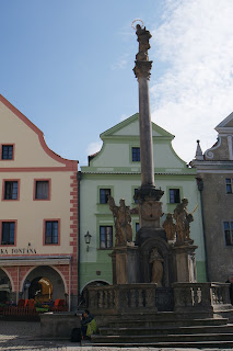 Ceski Krumlov에 도착하여 걷기 시작합니다. 언덕 위에서 시작했는데 마을의 전경이 아름답게 펼쳐집니다., 걸어
